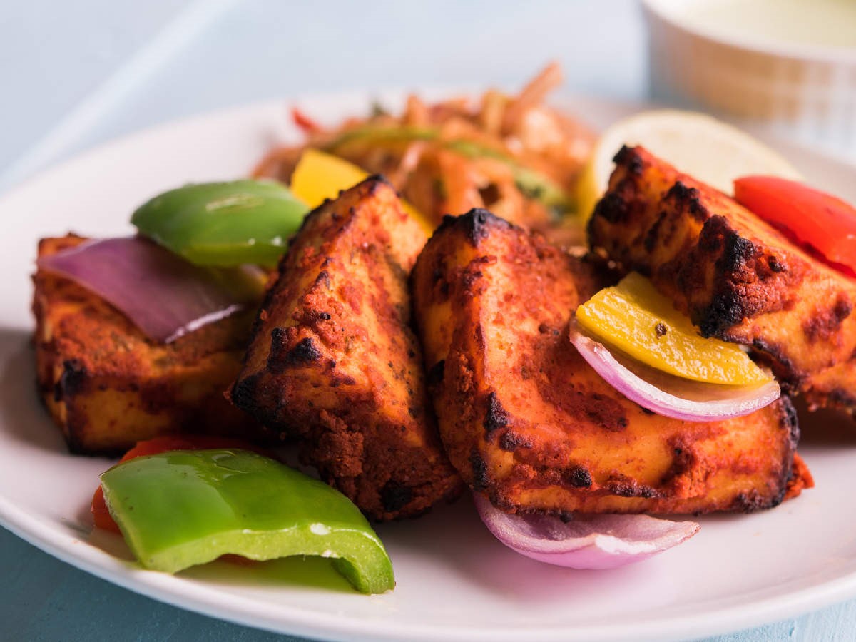Succulent, boneless chicken pieces marinated in yogurt, herbs, and spices are grilled in the tandoor, resulting in tender, juicy morsels that melt in your mouth.