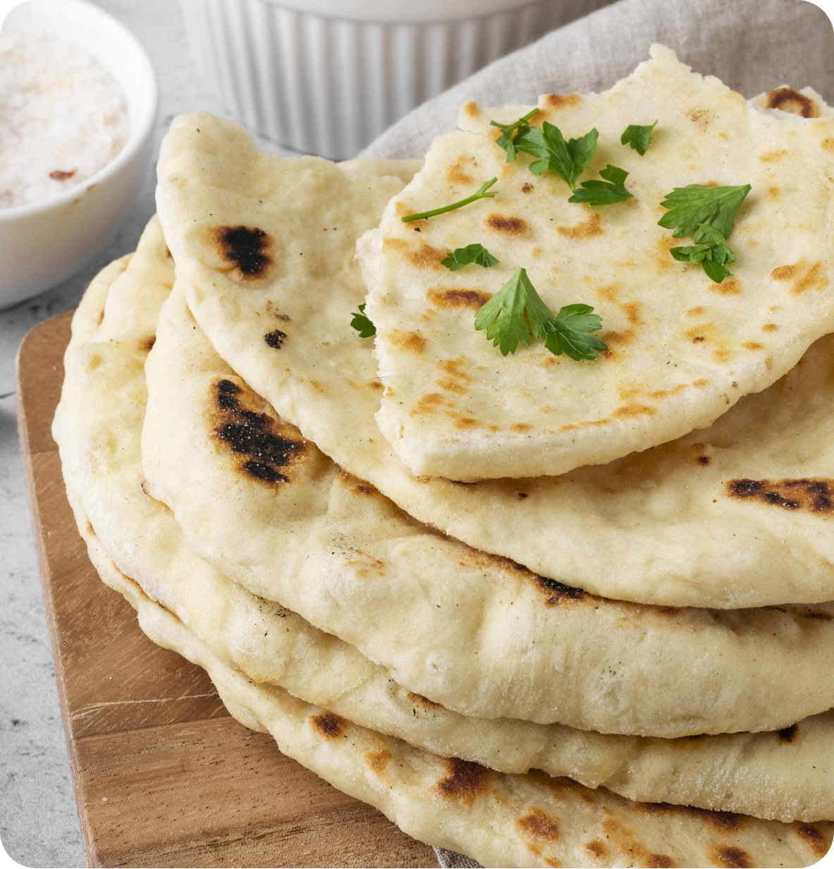A soft and puffy Indian flatbread made from whole wheat flour. Cooked on a hot griddle, it puffs up with steam, resulting in a light and airy texture