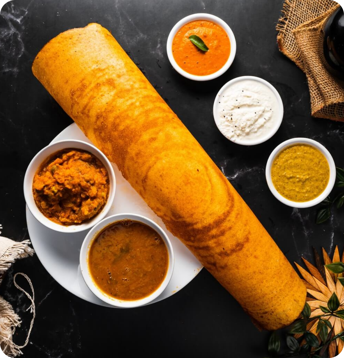 Crispy, savory South Indian crepe filled with a spiced potato mixture.